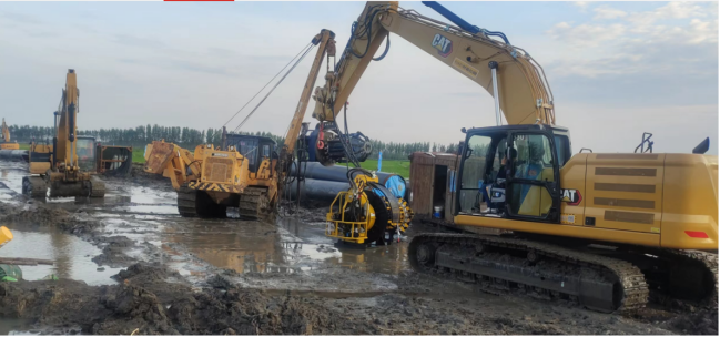 Suhigo 為江蘇油建(虎林-長春)天然氣管道工程項目提供履帶式吊管機(jī)等設(shè)備,滿足下溝作業(yè)要求。